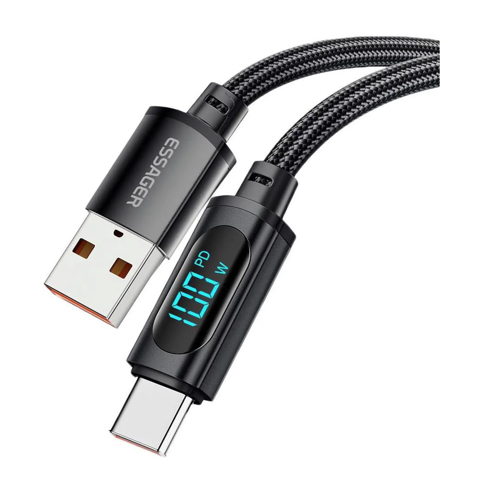 PD 100W USB A to USB C Cable7A 11V Fast Charging USB C Cable with LED Display Nylon Braided Charger Cord Type C Cable for Samsung S21 S20 iPad Pro Google Pixel LG